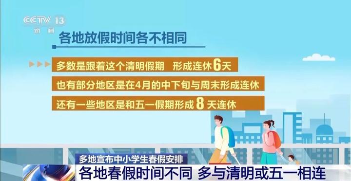 各地春假怎么放?记者通过梳理发现,各地放假时间各不相同,多数是跟着这个清明假期,形成连休6天,也有部分地区是在4月的中下旬与周末形成连休,还有一些地区是和五一假期形成8天连休。