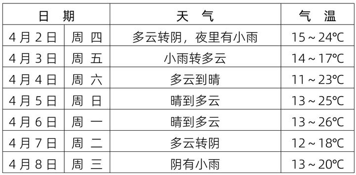 清明假日期间(4-6日)我省无降水