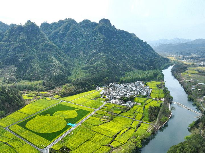 2025年4月7日,在安徽省黄山市休宁县齐云山镇南坑村拍摄的“葫芦”油菜花海。