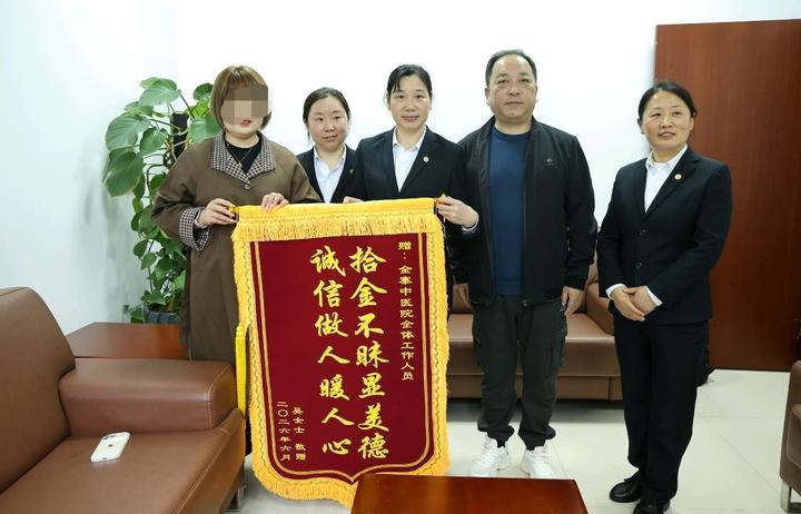 为了表示感谢,吴女士向捡拾并妥善保管的金寨县中医医院全体工作人员赠送了一面锦旗。
