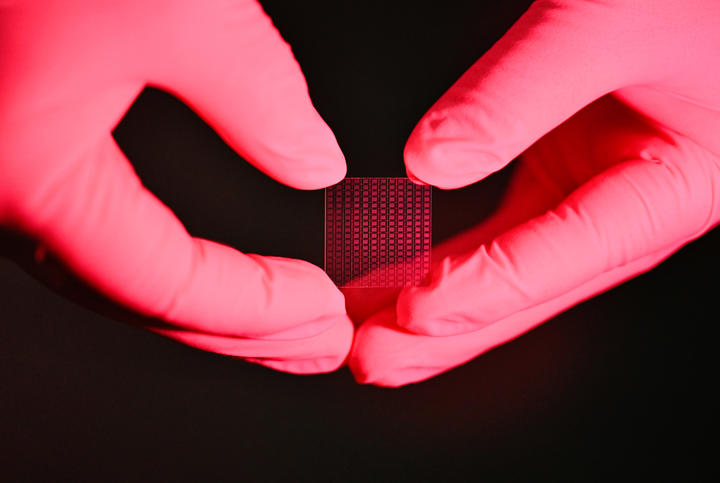 在一块一元硬币大小的玻璃片上,制备了218个传感器,每一个都可以精准地检测臭氧。近日,中国科学院合肥物质院安光所孟钢研究员团队与山西大学卢华东教授、安徽大学郭庆川教授团队开展合作,研制出一款臭氧监测微型传感器。
