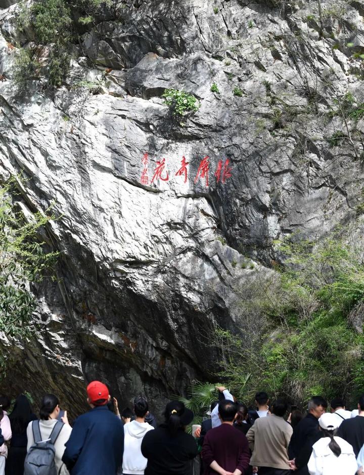 当天,天气晴好,银屏山景区迎来踏青赏牡丹的客流高峰。大家登高远眺,争相一睹绝壁牡丹初绽芳容,在青山云雾间感受千年古花的灵秀与生命力。