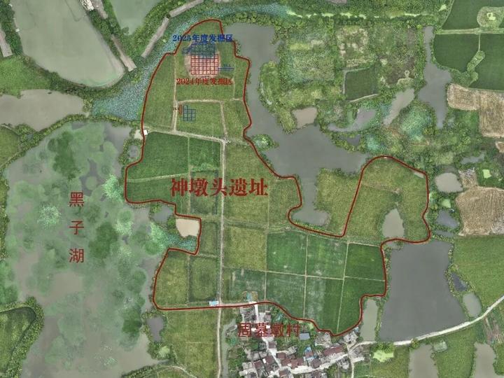 神墩头遗址位于芜湖繁昌区平铺镇郭仁村,面积约8万平方米,周边有全国重点文物保护单位万牛墩土墩墓群。遗址地处漳河西岸,平面略呈“凹”字形,西北有一高出四周约2米的台地。2024年、2025年,为开展本科田野考古实习,南京师范大学联合安徽省文物考古研究所、芜湖市文物考古研究所、芜湖市繁昌区文物保护中心对该遗址先后进行两次考古发掘,揭露面积1640平方米。发掘分北、南两个区域。北区位于遗址西北台地,南区位于台地南侧稻田。