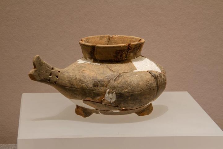 据介绍,备受期待的磨盘山遗址陶猪尊将于2026年6月至9月限时展出,预开展期间,鱼尊和牛尊原件率先登场,学术与观赏价值俱佳。