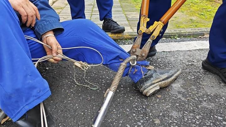 消防员立即使用工具进行剪切