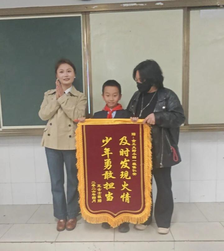 4月21日,合肥工大附小四年级学生侯仁安收到一份特殊礼物——邻居王女士专程送来的一面“及时发现火情,少年勇敢担当”的锦旗,感谢他在4月18日的勇敢行为。