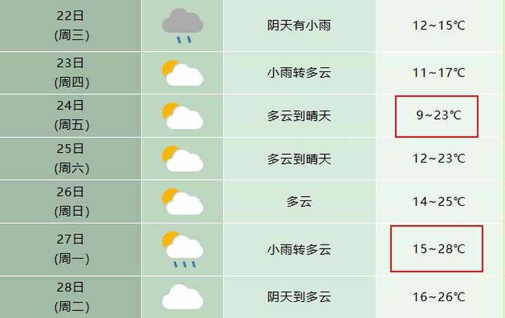 但需要注意周五最低气温仅9℃