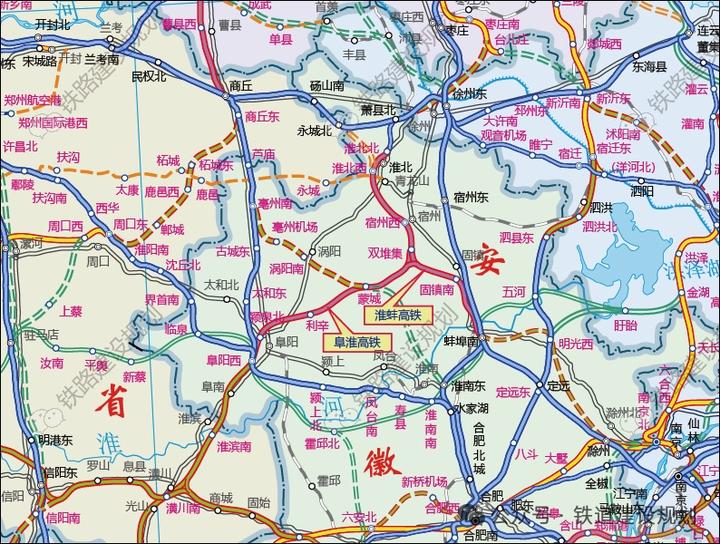 止于在建淮北至宿州至蚌埠铁路双堆集站
