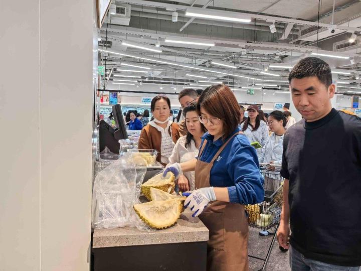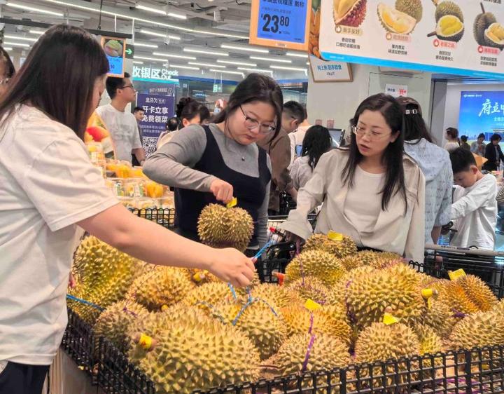 对于榴莲降价,不少市民有着直观感受。市民张露露原本不常购买榴莲,当天看到选购人群热闹,便临时下单:“以前一个小金枕就要一百多元,现在小果只需几十元,价格优势很明显。”不少消费者坦言,虽不清楚降价的具体原因,但切实感受到了消费实惠,打算在榴莲上市季多选购尝鲜。