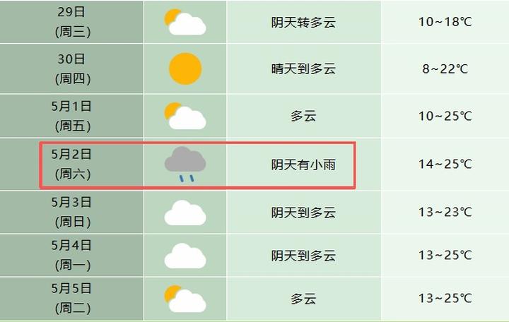 4月29日:江北阴天转晴天;沿江江南阴天转多云有小雨,局部中雨。