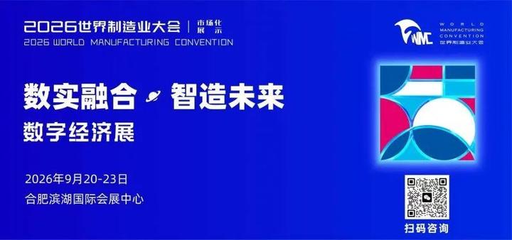 2026世界制造业大会将于9月20—23日在合肥滨湖国际会展中心举办。作为大会市场化展之一,数字经济展以“数实融合・智造未来”为主题,紧扣智能化、绿色化、融合化方向,聚焦数字产业化、产业数字化双向突破,打造全球数字技术与实体经济深度融合的展示、对接、合作平台,助力数字中国、制造强国建设。