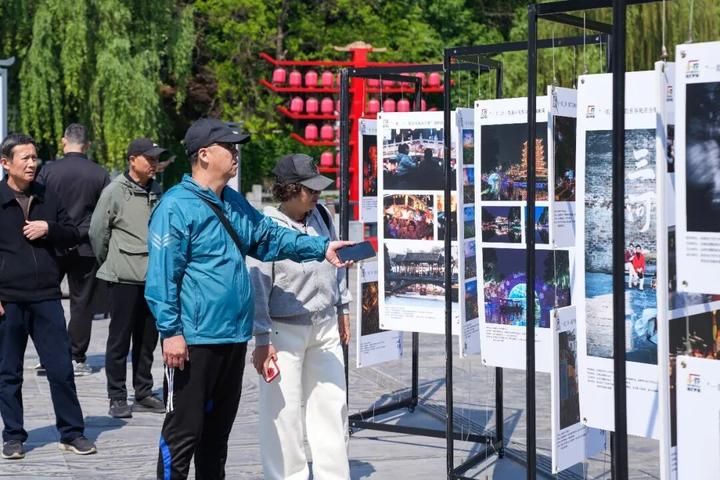 展览现场,一幅幅佳作依次陈列。薄雾氤氲的水乡晨景、灯火璀璨的古镇夜景、质朴温暖的市井烟火、年味浓郁的新春盛景,全方位呈现出三河古镇的千年底蕴与时代活力。摄影爱好者们现场交流创作心得、寻找自己的入选作品,游客们驻足观赏、细细品味,在光影之间感受古镇独特魅力,现场氛围热烈有序。