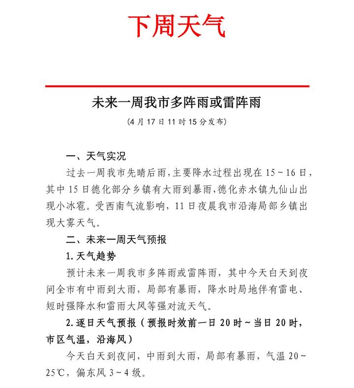 发布未来一周天气预报