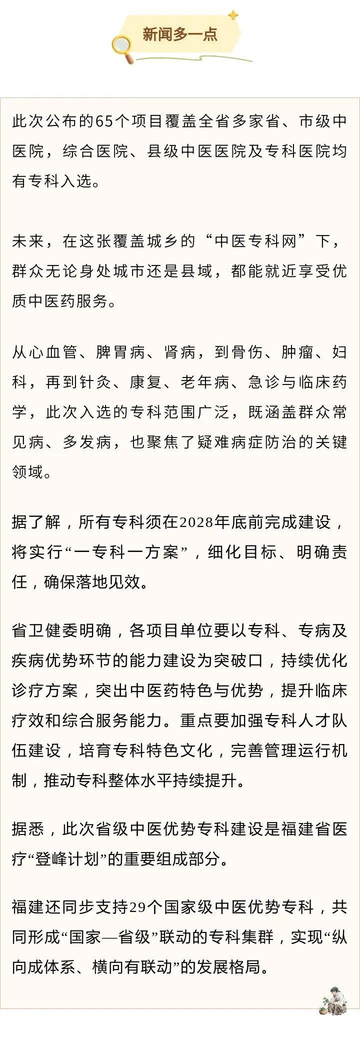 65个省级中医优势专科建设项目名单