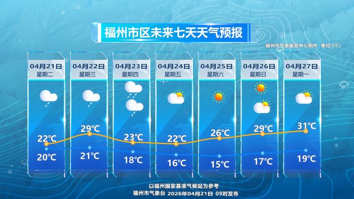受华南准静止锋影响,21日阳光隐身,福州各地大部分时段天气以阴天为主,有不稳定雷雨洒落。弱冷空气持续渗透,最高气温明显下降,加之空气湿度偏高、风力有所增大,整体体感偏凉,与前期的温暖舒适形成明显差异,建议大家适当调整日常穿着,避免着凉。