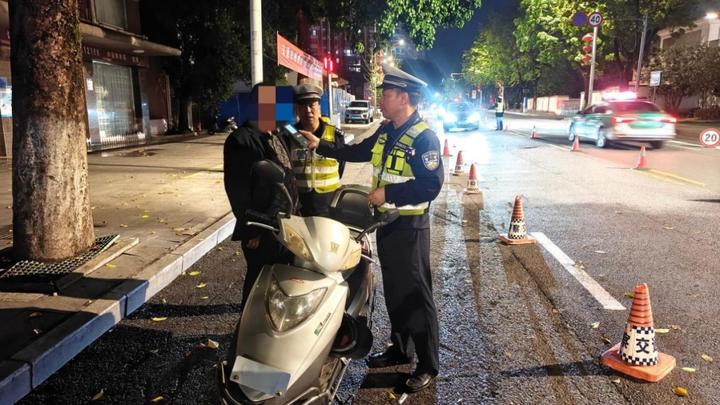 4月7日,黄某某酒后驾驶摩托车,行驶至工业南路白沙街道路段,被执勤民警当场查获。经呼气式酒精测试仪检查为69mg/100ml,涉嫌饮酒后驾驶机动车,民警依法对其进行处罚。