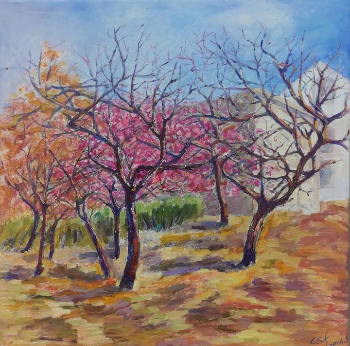 油画写生作品《四贤会馆前的小林子》
