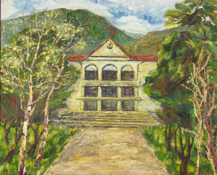 油画写生作品《礼堂》