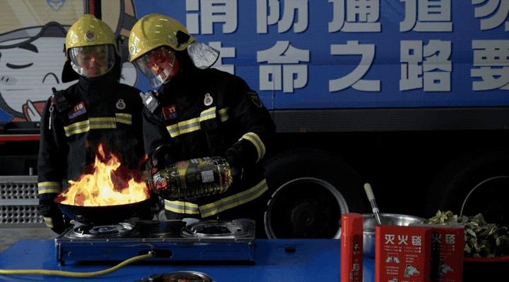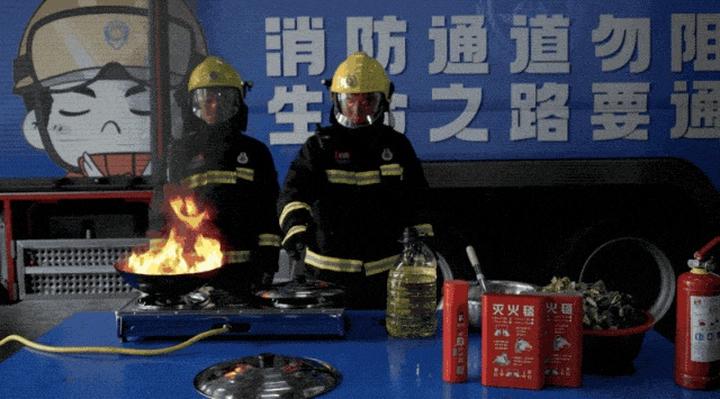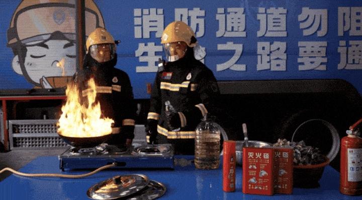 随后,消防员沿锅边缓慢倒入足量冷油,高温油温快速降低,猛烈明火逐步熄灭,灭火效果显著;采用适配尺寸的锅盖从侧面快速覆盖油锅,隔绝空气后,明火迅速缺氧熄灭;展开专用灭火毯完全覆盖锅体,同样能快速阻隔火源,成功扑灭火势。