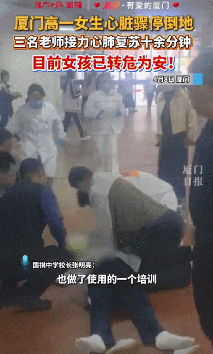 校方说,除了三位老师,林寒景老师、校长张明亮、副校长杨寿松、年段长张榆鑫、班主任陈欣钥,及食堂现场经理陈建宁,食堂员工林阿阳、廖慧良,保安陈亚恳,物业负责人张丽旋等,也都参与了这场千钧一发的抢救。