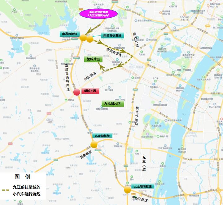 1.九江往南昌方向:南昌西绕城高速→南昌西枢纽→南昌西收费站→南昌大道西→G320国道→望城片区