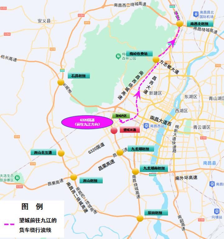 1.九江往南昌方向:南昌西绕城高速→梅岭收费站→方志敏大道→昌西大道→双云路→G320国道→望城片区