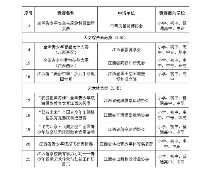 4月24日,江西省教育厅发布2026-2028学年面向全省中小学生竞赛活动名单公示,拟将全国中学生数学奥林匹克竞赛(江西赛区)等21项竞赛活动列入全省中小学生竞赛“白名单”。