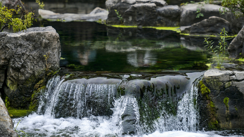 五龙潭公园古温泉“喝饱” 汇聚成溪现清泉石上流景观