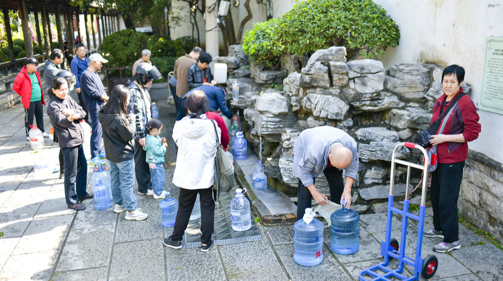 漂泉呈现“飞瀑流泉”景象,市民排队接泉水尽享甘甜