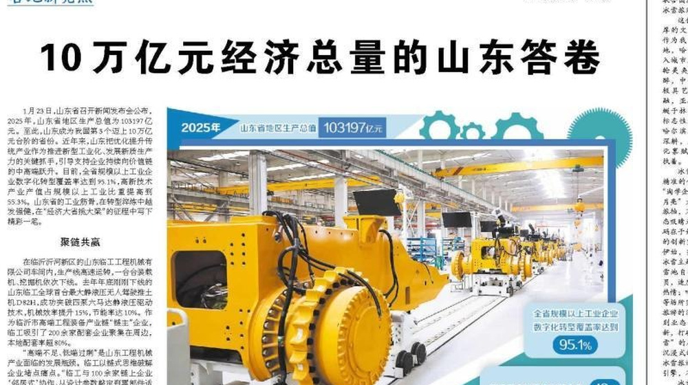 人民日报头版头条: 山东挺起工业硬脊梁