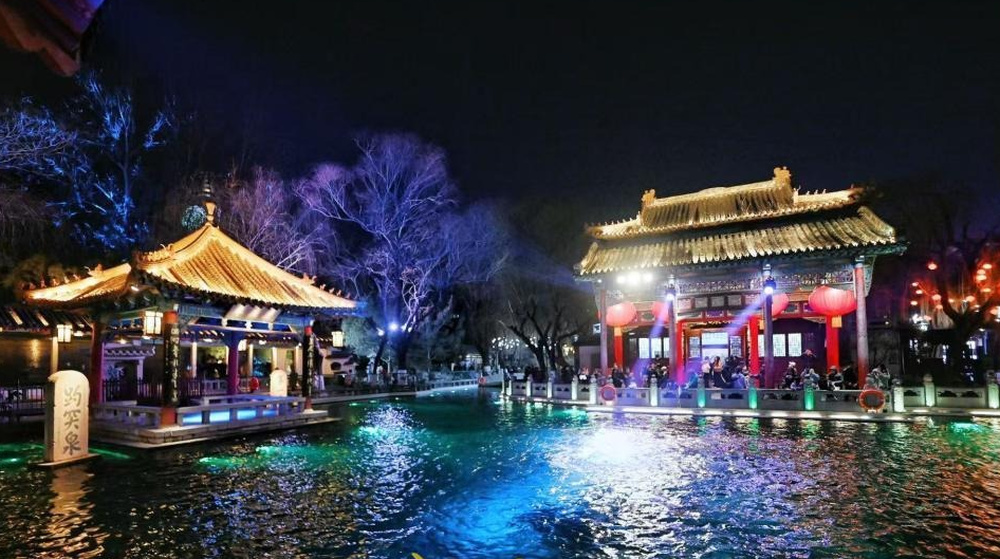 华灯初上 趵突泉三股水“水涌若轮”夜景如画